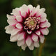 Rijkbloeiende roze en witte dahlia voor in de border. Hoogte 50 cm.