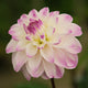 Geinige waterleliedahlia met roze gestreepte bloemblaadjes. Enig!