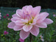Frisse en vrolijke perkdahlia met vrij grote bloemen. Helder geel met rode streep. Hoogte circa 100 cm.