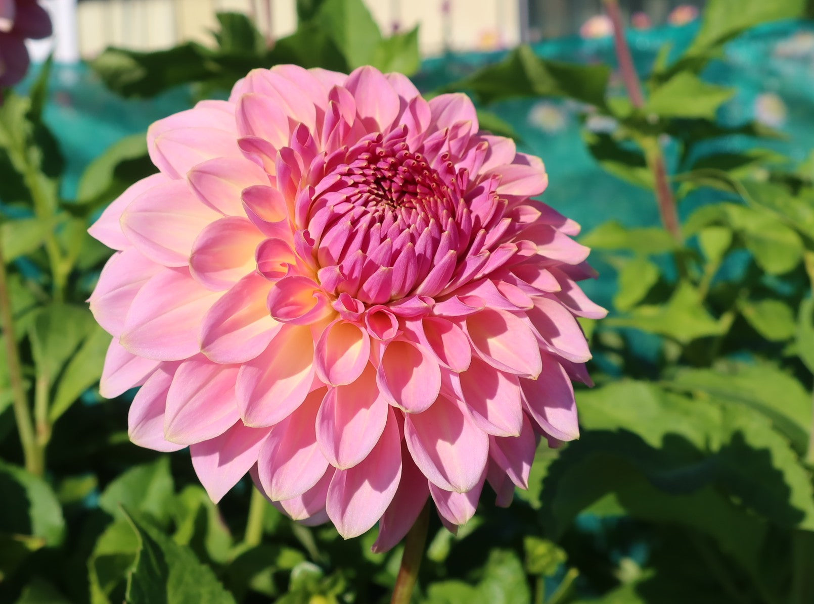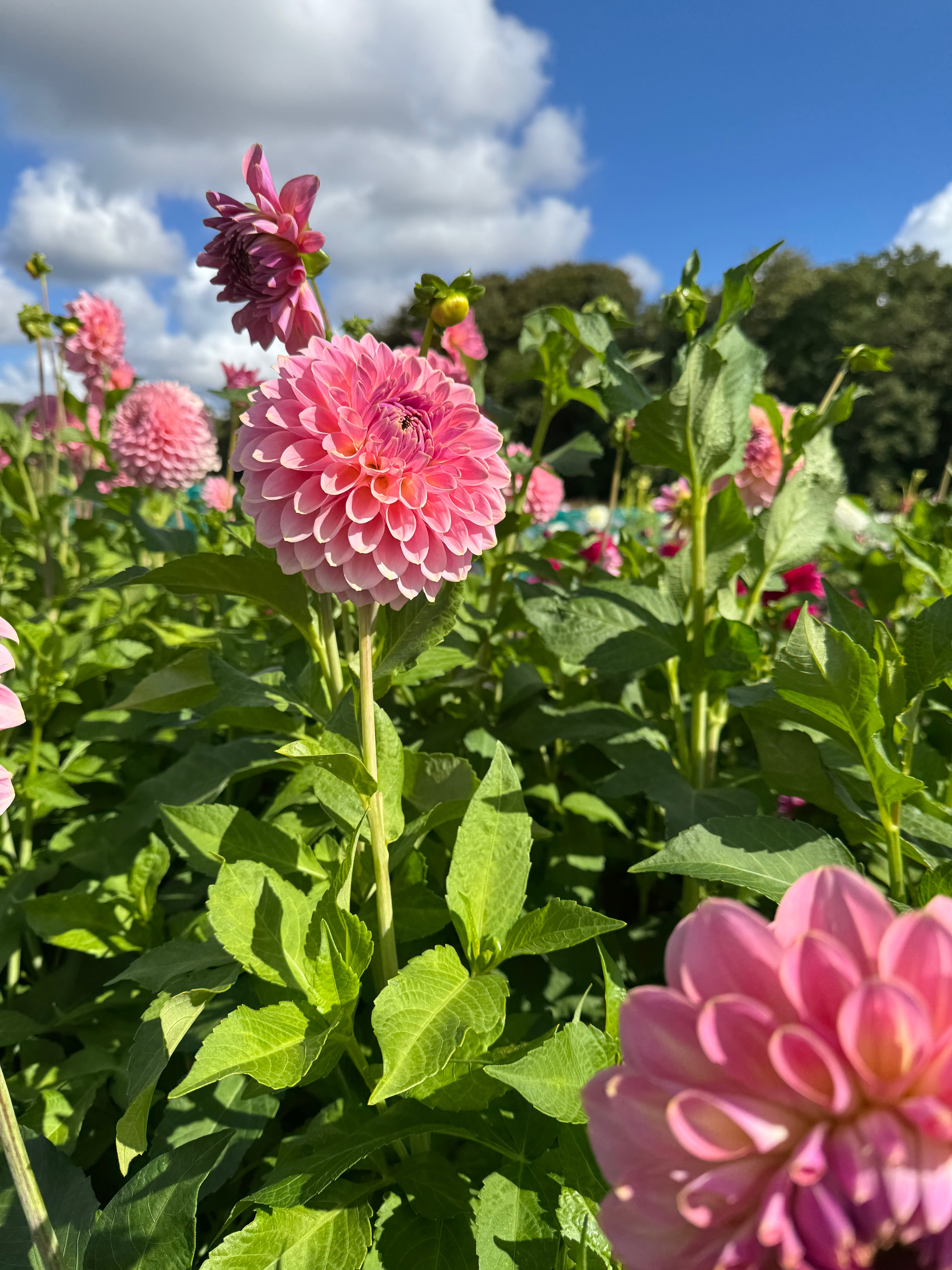 Weer zo'n beauty uit de nalatenschap van Henk van Eeuwijk. Deze middelgrote decoratieve dahlia is een eyecatcher met haar grote roze bloemen met in ieder bloemblaadje een zachtgele streep vanuit het hart.